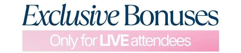 Attend live and you’ll get access to the full recording so you can revisit and implement anytime + the bonuses listed before.